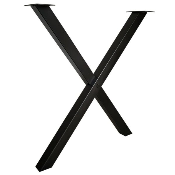Pied X conçu en tube d’acier de 5 x 5cm et fabriqué dans notre atelier.